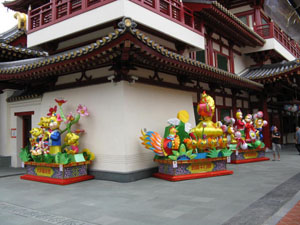 シンガポールにある最古中国のお寺だそうで、香港でよくみたような風景が。