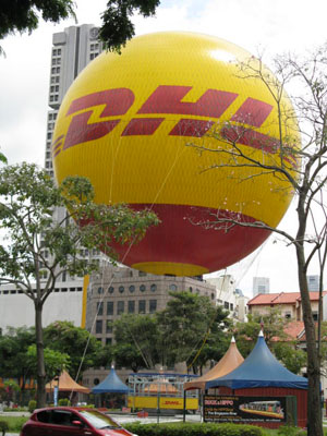 近くの広場(?)で気球に乗せてくれるようです。