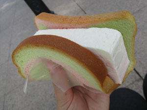 たいていの屋台ではパンかウェハースか選ばせてくれてた。