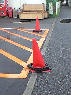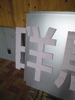 結構人通りの多い所らしく、犬の散歩とかウォーキングの人とか、保育園の散歩の団体などが通ったのですが、社会科見学中(?)の小学生には看板取り付け作業が大ウケしてたみたいです。