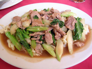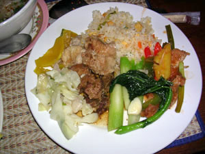 豚肉と野菜のヌードル。4ドルくらい。