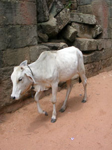 遺跡の入り口で、牛さまがお通りになりました。ビビった。