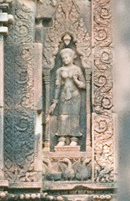 正面には、仏教の吉祥天と呼ばれる女神アプサラス像があります。