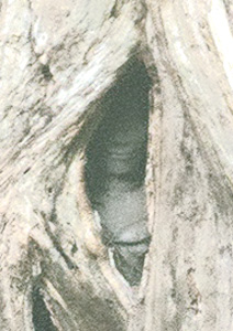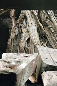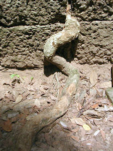 壁の隙間からにじりでてくる根。