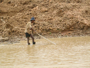 水が濁ってて水位が分からないのですが、乾季なのでかなり低いとのこと。