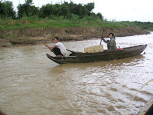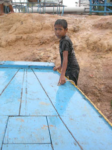 ガイドさんと運転手がちょっと待ってて~と言っているうちに、地元のこどもがわらわらと寄って来た。つうかね、船着き場も舗装などされていなんですよ…土の斜面なわけです。しかもその土が粘土質なので、濡れると非常に滑りやすいわけです。