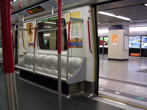 香港の地下鉄はシートが布ばりではないようです。