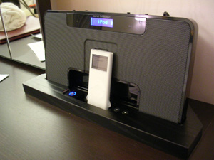 ホテルの部屋にipodのスピーカーがあったので再生してみる。