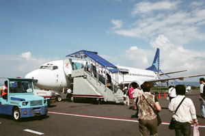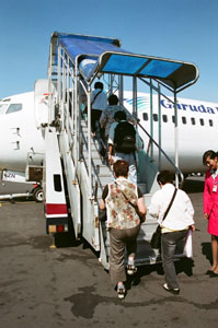 ガルーダ航空の飛行機にはタラップで乗ります。