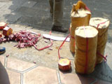 大量の爆竹を鳴らしていました。