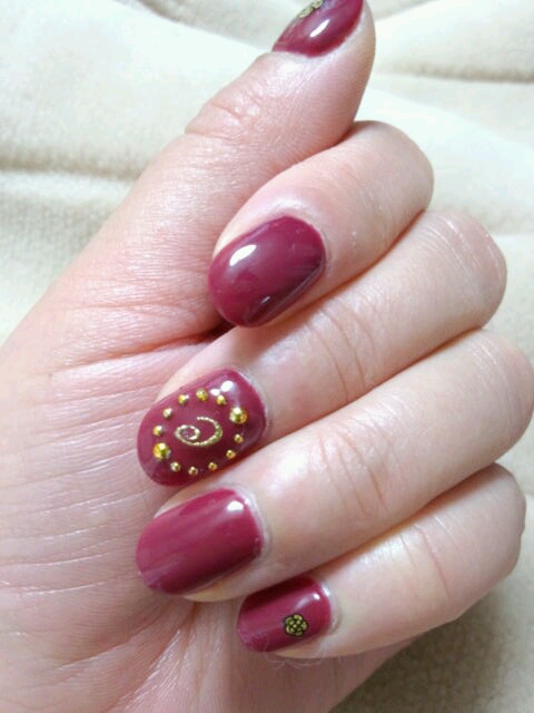 ワインレッドとゴールドで大人っぽく!